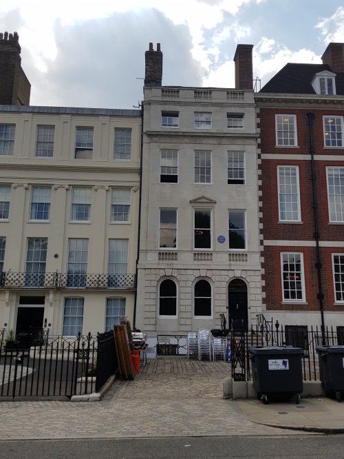 A blue plaque commemorating the founder of the Royal Free and Royal Marsden Hospitals adorns a townhouse in Lincoln’s Inn Fields.